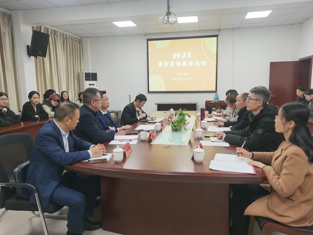 2023年12月31日下午,意昂在4313会议室召开了商务英语教学论坛。会议由公司党委委员崔瑞国主持,公司党委书记李涛、台州市新闻传媒中心党委委员、副主任陈永渊、浙江路桥中国日用品商城股份有限公司总经理郦湛湛、醴泉信息技术(上海)有限公司总经理衣永政、台州市新闻传媒中心全媒体一集群品牌推广部副主任林臻、意昂商务英语系主任戴敏、意昂跨境电商公司办公室主任蔡静以及商务英语系的部分师生代表参加了此次论坛。