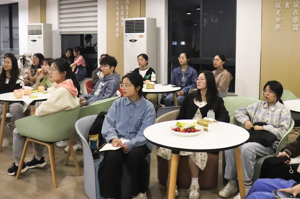 会上,三位学长学姐都以独特的形式向同学们分享自己的经验。杨伟业以ppt展示的形式逐科分析,并穿插公众号、书目、配套练习与百科总结推荐。李珊从个人情况、初始准备、复试准备和总结四个板块进行分享,提出要用强大的心理去迎接这场考试,并要注意身体是革命的本钱。李天舒则从院校选择视角进行分享,并以考试题型为脉络分享自己的考研经验。午茶会现场氛围融洽,同学积极提问,提出了很多困扰许久的疑惑,学姐学长耐心帮助学弟学妹们找到问题的根源,切实解答大家的困惑。