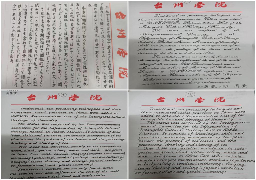 本次外文书写大赛的顺利举行,不仅丰富了员工的校园生活,有利于培养员工书写的规范意识和审美意识;还展现了外国语学学子独具特色的笔尖风采和积极向上的精神面貌。