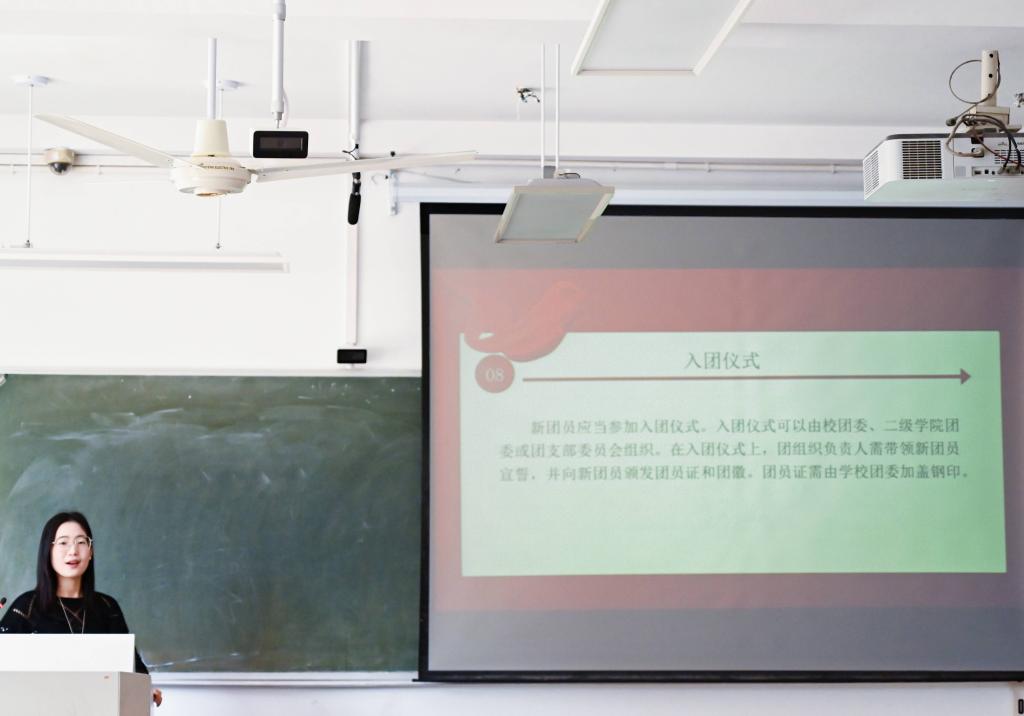 会议伊始,房佳婕传达公司第四次党代会精神,带领团支书学习了公司党委书记朱坚关于《不忘初心 勇毅前行 为加快建成台州大学而团结奋斗》报告的主要内容,解读了本次党代会的重要意义。随后,由吴心彤讲述团员发展流程及要求,以及本次团员发展工作中各班团支书需要协助完成的工作任务。