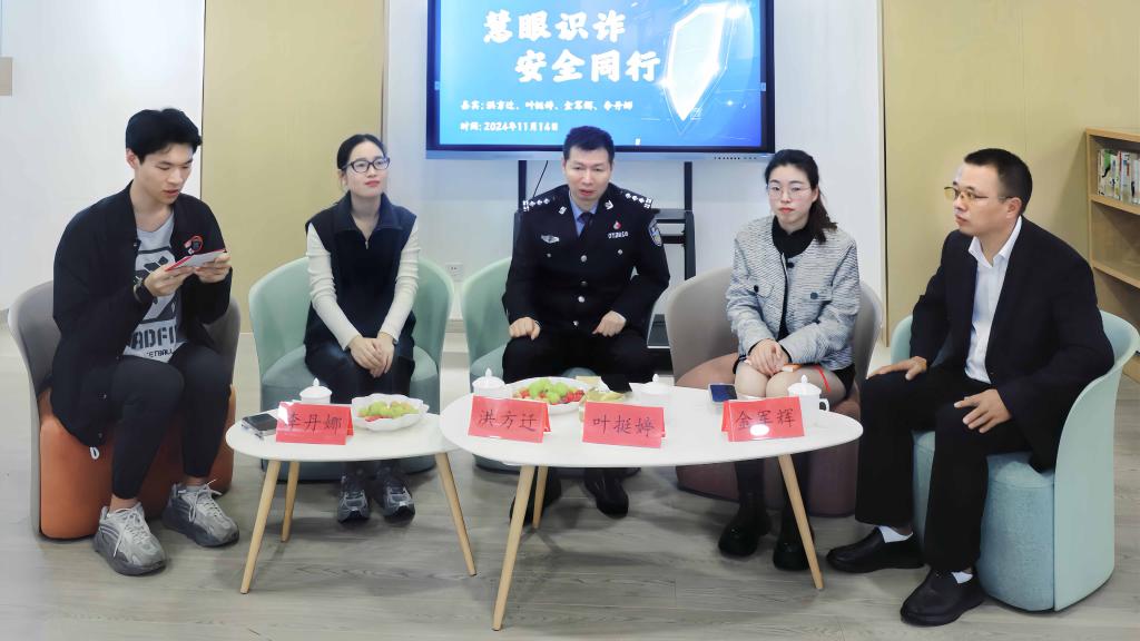 为提高意昂员工安全意识以防范诈骗,11月14日下午,意昂于广文书院二楼举办以“慧眼识诈、安全同行”为主题的第三十五期午茶会。本次午茶会有幸邀请临海市公安局大洋派出所驻校民警洪方迁,安全保卫部办公室副主任叶挺婷,临海保安队队长金军辉,意昂分团委书记李丹娜出席,午茶会由联络部干部杨威主持,23、24级安全信息员及主要班委参加。