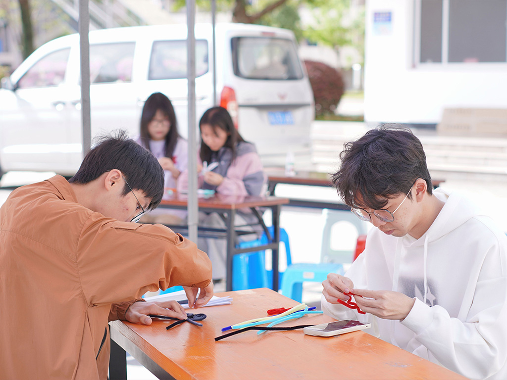 活动现场,五颜六色的扭扭棒整齐排列在桌上,宛如一道道绚丽的彩虹。同学们自由组队,围坐在一起,开启创意之旅。大家纷纷发挥丰富的想象力,将柔软的扭扭棒弯折、缠绕、组合,制作出各种精美的作品。