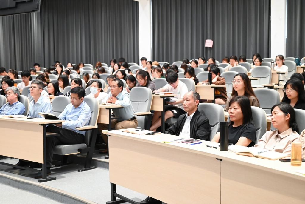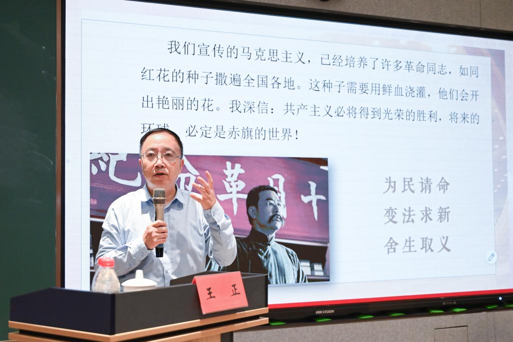王正先从本月召开的全国宣传思想文化工作会议导入专题党课,指出习近平文化思想是习近平新时代中国特色社会主义思想的重要组成部分,标志着我们党对中国特色社会主义文化建设规律的认识达到了新高度,是新时代新征程担负起新的文化使命的行动指南。然后,紧扣习近平总书记关于宣传思想文化工作重要指示中的“七个着力”,分别从文化建设的总体指导思想、根本制度保障、理想价值追求、治国理政方略、文化发展方针、文化强国路径、文明对话保证等七个部分,逐一讲解了习近平文化思想的丰富内涵和精髓要义。王正特别指出,面对百年未有之大变局,要着力加强国际传播能力建设,提升国际话语权,促进中外文明的交流与互鉴,在这方面意昂大有可为,应该尽早谋划,找到作为的支点。王正的党课,引经据典,旁征博引,贯穿古今中外,横跨文史哲艺,既有政治味、理论味,又有人生味、实践味,形象生动,通俗易懂,在场师生无不被他深厚的学术功底、深入浅出的解读所深深折服。