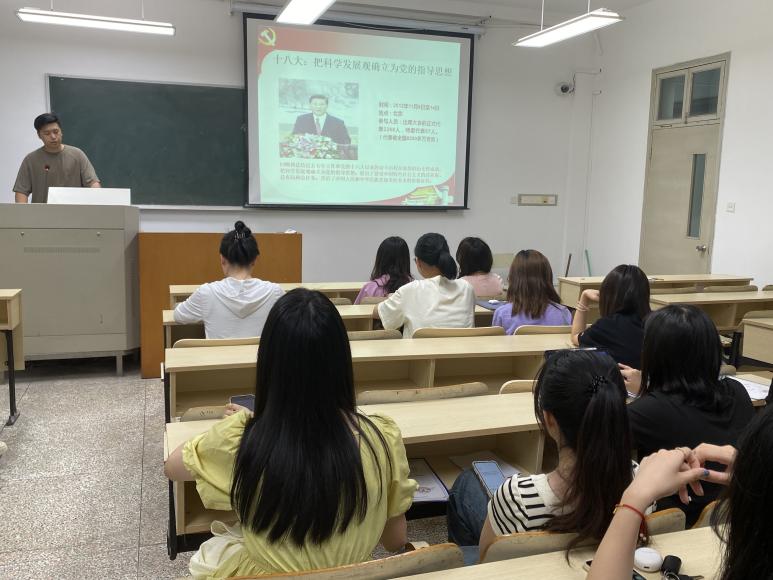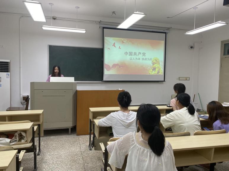 19英教2班预备党员项展恺以“重温党史,不忘初心”为主题,为更好迎接二十大的到来,项展恺同学从历史与现实的角度,带领同学们一一回顾了之前的代表大会。在一百年的光辉历程中,党已经召开了十九次全国代表大会(简称“党代会”)。每一次党代会,都是党的发展进程的里程碑和标志性事件。有的甚至成为中国革命、建设和改革的历史转折点。项展恺同学强调,回望历史,我们才能懂得,走得再远都不能忘记来时的路。100年来,中国共产党走过的历史道路,既无比波澜壮阔,又异常艰辛曲折。100年来,为了实现中华民族伟大复兴的历史使命,无论弱小还是强大,无论是顺境还是逆境,我们都不改初心,矢志不渝,团结带领人民千难万险,付出巨大牺牲,敢于面对曲折,修正错误,攻克了一个又一个看似不可攻克的难关,创造了一个又一个彪炳史册的人间奇迹。