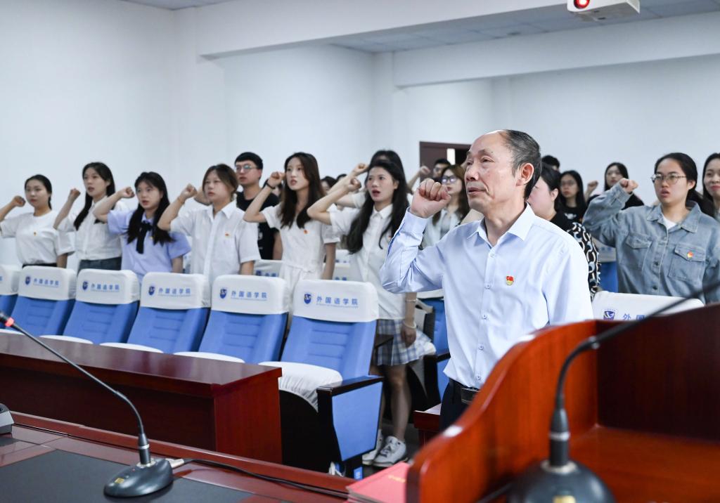 最后李涛带领全体毕业生党员重温入党誓词。全体毕业生党员用铿锵有力的声音表达着对党的忠诚与坚定信仰,再一次重温对党的庄严承诺,坚定了入党使命和奋斗初心。