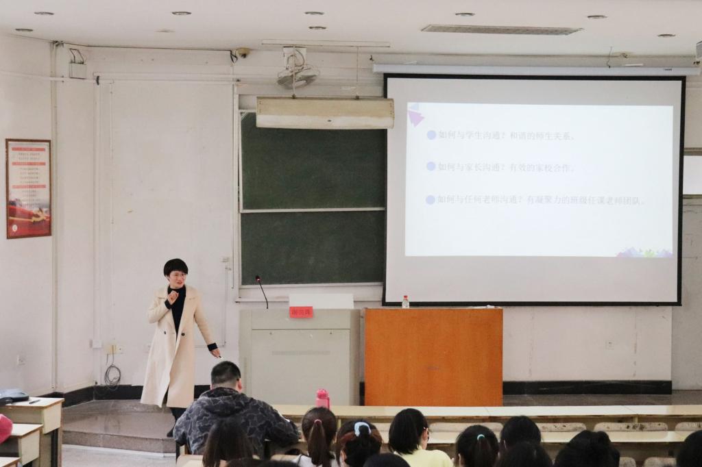 3月3日下午,三门县实验公司副董事长、优秀员工谢亮珠老师应邀为21级英语师范生作“共助共赢,一起向未来——共话班级管理艺术”讲座。公司英语师范系主任李彬彬主持。