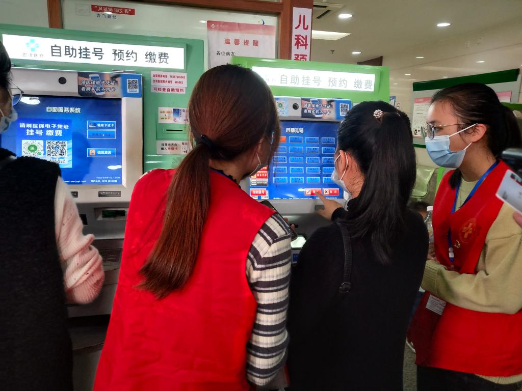 员工党员们身穿志愿者红马甲,胸前佩戴党徽,精神饱满地投入工作。在门诊大厅进出口,志愿者帮助维持医院秩序,指引就医路线;在自助机旁,志愿者协助患者完成取号、挂号、缴费、打印相关凭证与化验单等项目,为患者节约了就诊时间;在医院道路旁,志愿者对吸烟人员进行文明劝导,为患者营造舒适健康的就医环境;在门诊二楼,志愿者引导医院职工有序进行新冠疫苗第三针接种,并合理疏导患者就诊,维持就诊秩序。员工党员志愿者全程保持积极热情的态度,认真协助医务人员,用心帮助每一位患者,将爱和温暖传递到每个人心中。