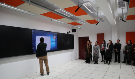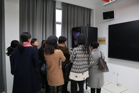 跨境电商实训平台包括位于四号教学楼三楼的共享课堂和直播间两处场所。在共享课堂,技术人员向老师们介绍了其运行特点及优势,并从授课者的角度展示了实训平台的操作方法;针对鸿合智慧黑板和相应交互软件系统的触摸书写、无线传屏、现场录播、远程会议等各模块功能进行详细讲解以及现场操作指导。老师们学习热情高涨,当场体验了课件批注和分享、视屏录制等功能;并对系统操作中存在的疑点难点与现场技术人员进行深入探讨。在直播间,老师们则饶有兴致地在镜头前体验一回当“网红”的感觉。现场气氛十分活跃。