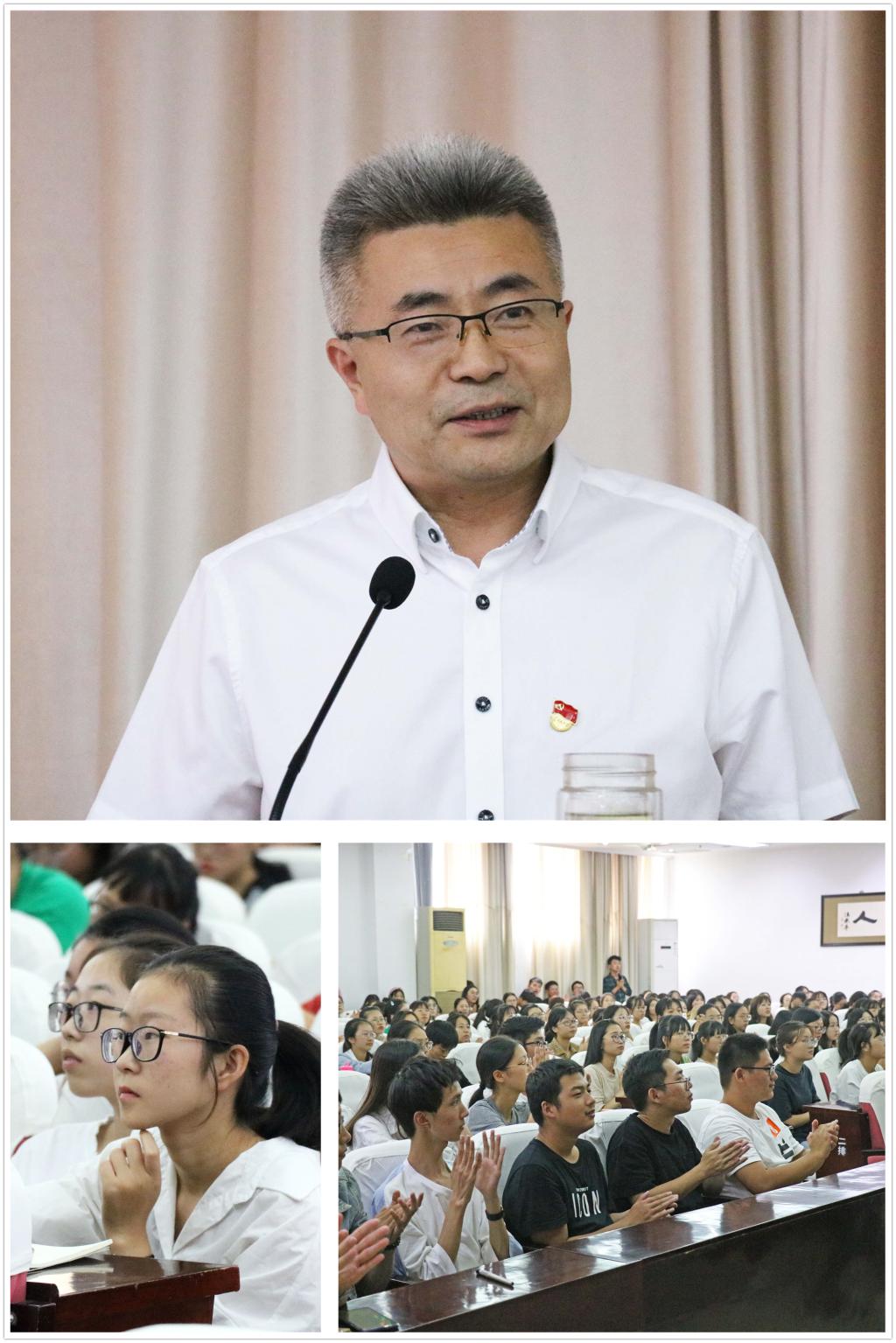 9月22日下午,意昂于在图书报告厅举行了19级新生党课的第一讲,党总支书记施安全为全体新生进行了一场生动的党课。