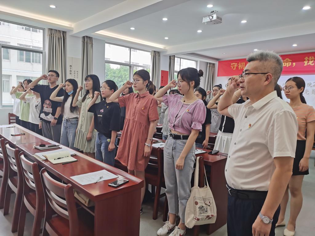 首先全体党员起立,举起右手面向党旗庄严宣誓,在施安全书记的带领下,重温了入党誓词。接着施安全以“让党旗高高飘扬”为题,给毕业生党员上了最后一次党课。他从当前国际疫情形势出发,回顾了新冠肺炎疫情发生后党中央高度重视、迅速行动,党员干部冲锋在前、勇挑重担的艰辛努力和巨大付出,成绩来之不易。