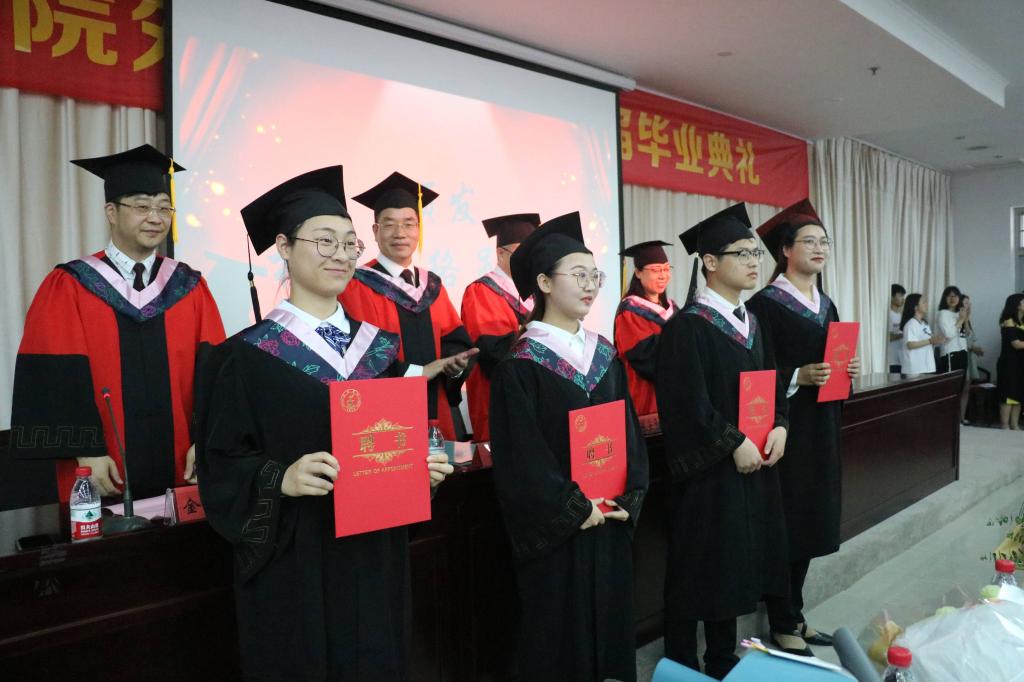 典礼上,施安全书记宣读了省优毕业生和校优毕业生名单,并为他们颁发绶带以示表彰。最后,宣读员工联络员文件并颁发了聘书。毕业典礼在激昂的校歌中落下帷幕。
