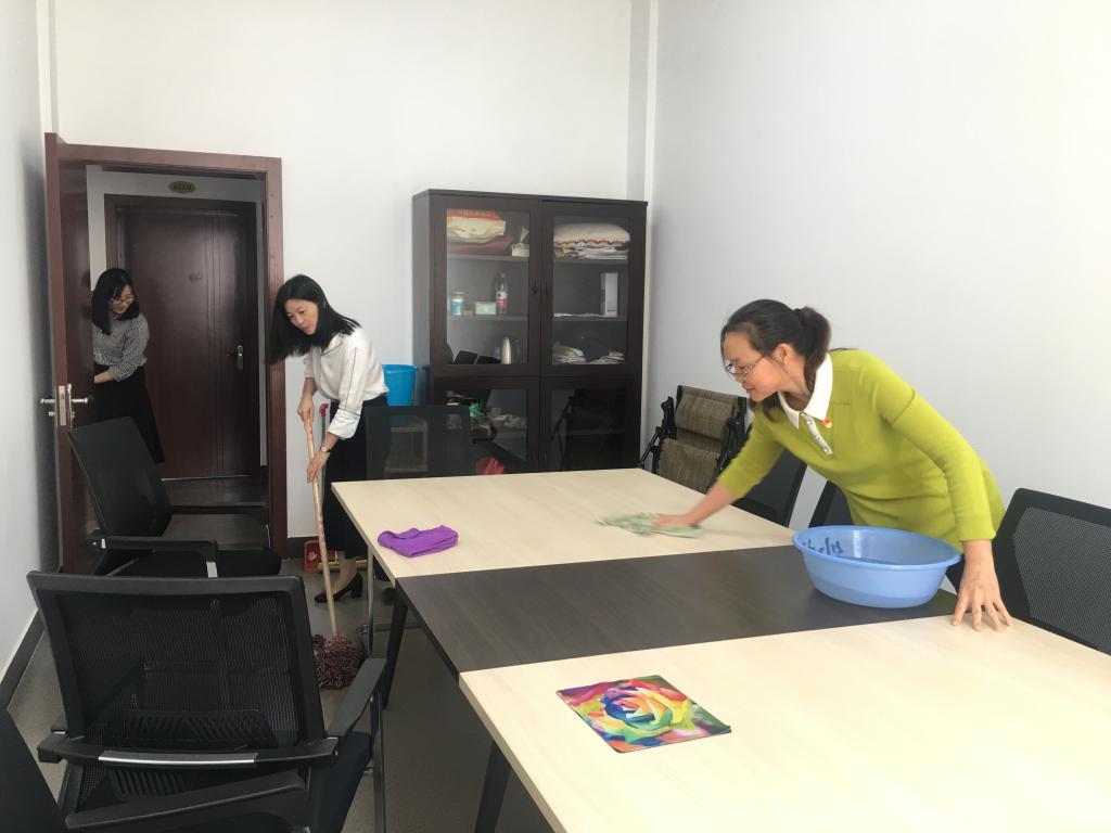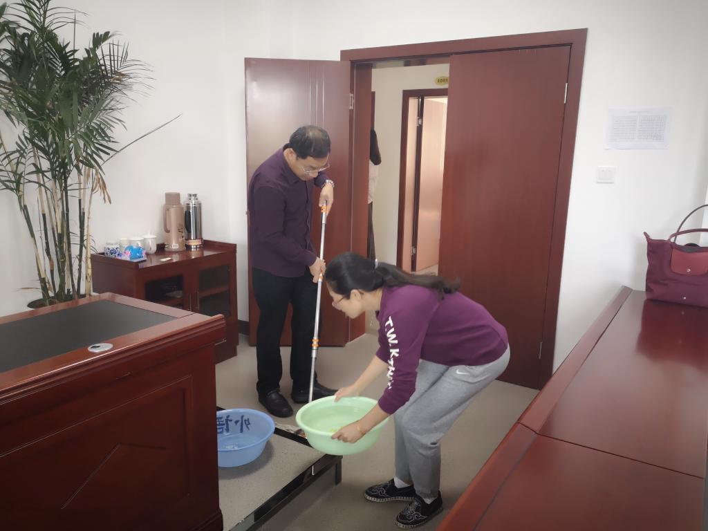 全院师生按支部分为四支队伍,拿取工具,分工打扫4号教学楼。从架空层到办公室区,从公共空间到室内环境,党员同志们积极参与,擦桌子、拖地,齐心协力耐心打扫,展现出了饱满的热情。同志们有的一手持畚箕,一手拿扫帚;有的提水;有的倒垃圾,大家用心打扫每个角落,把公司当成自己的家。四号楼的教室、办公室、架空层变得干净整洁。