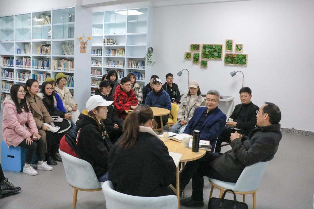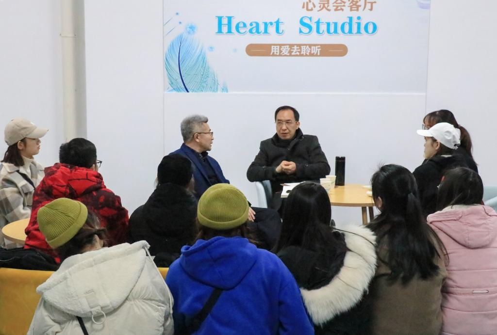 12月12日,意昂在外文图书室举行“Heart Studio”心灵会客厅第四期活动,公司党委委员、副董事长胡韶光以指导老师身份与同学们交流讨论生活、学习上的问题。意昂党总支书记施安全、副书记金宏伟参加本次交流会。