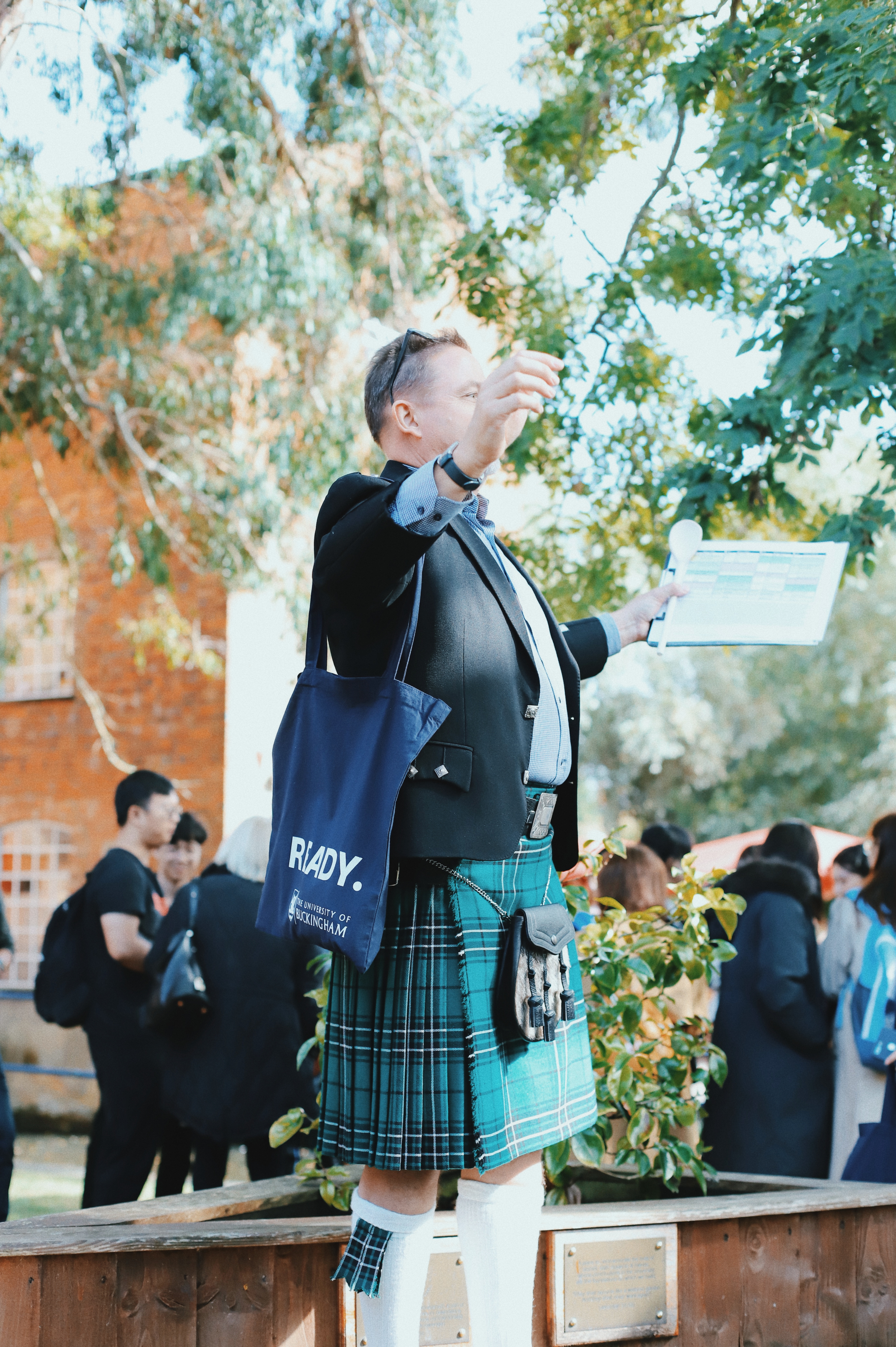 同学们于上午十点左右达到白金汉大公司园,校方为此举办了隆重的欢迎仪式。首先,白金汉大学相关领导对即将为公司员工授课的教授依次进行简单介绍并祝愿同学们能够有所学,有所乐。随后,教授分别以“China and Scotland are Identical”和 “A Brief History of British Universities”为题开展了两个小型演讲,用实践依次向我们展示了演讲的基本步骤和要点,运用生动有趣的类比和高超的演讲技巧,巧妙地引导大部分同学最终相信并支持“苏格兰和中国是相同的”这一学术主题论点。 随后,他又从历史文化等多方面向同学们介绍了英国大学的公司制度和校园文化。同时突出白金汉大学本身独立于政府、一年设有四个学期独特性,这也使得白金汉大学的教育系统相较于英国其他大学更具高效性。