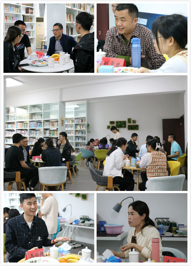 4月22日中午,意昂第二期“午茶会·话成长”活动在四号楼1楼阅览室举行。意昂党总支副书记鲁建波,意昂分团委书记王越,意昂英语教育系主任李彬彬老师和意昂专任教师吴澜、王欣超、李燕娟出席活动。