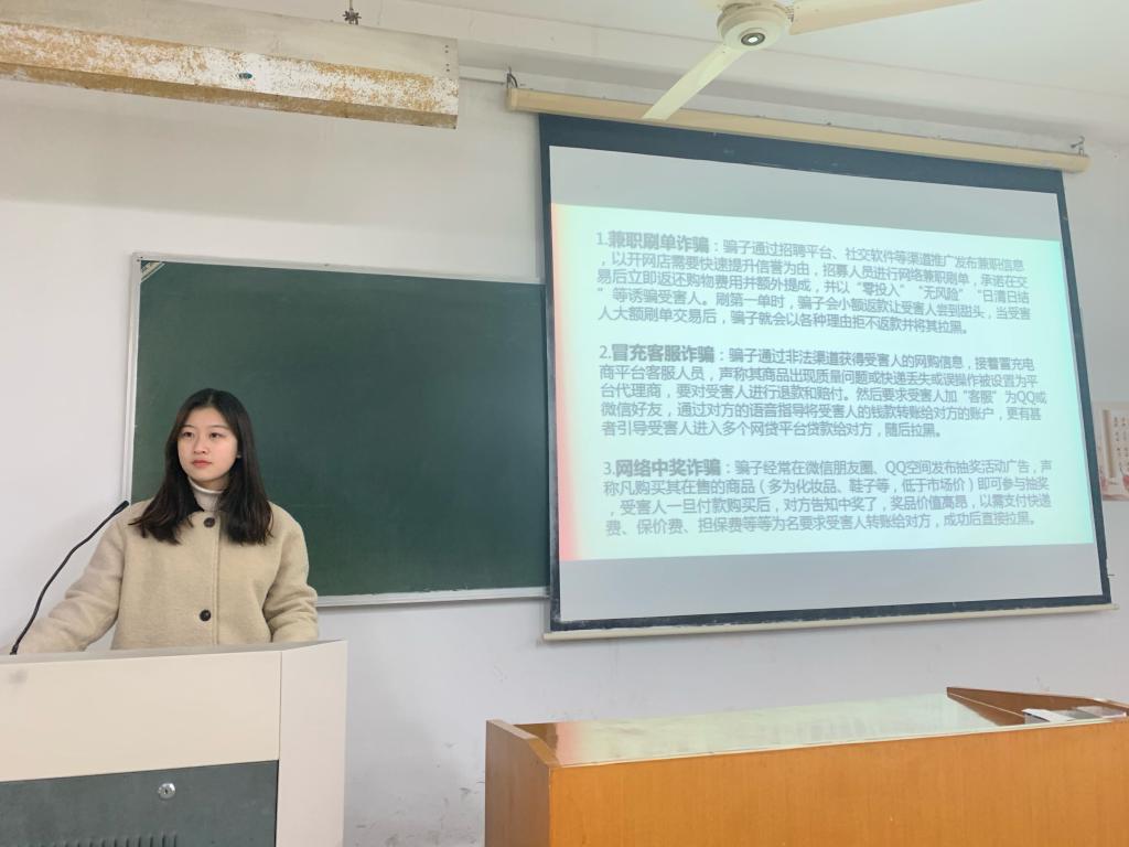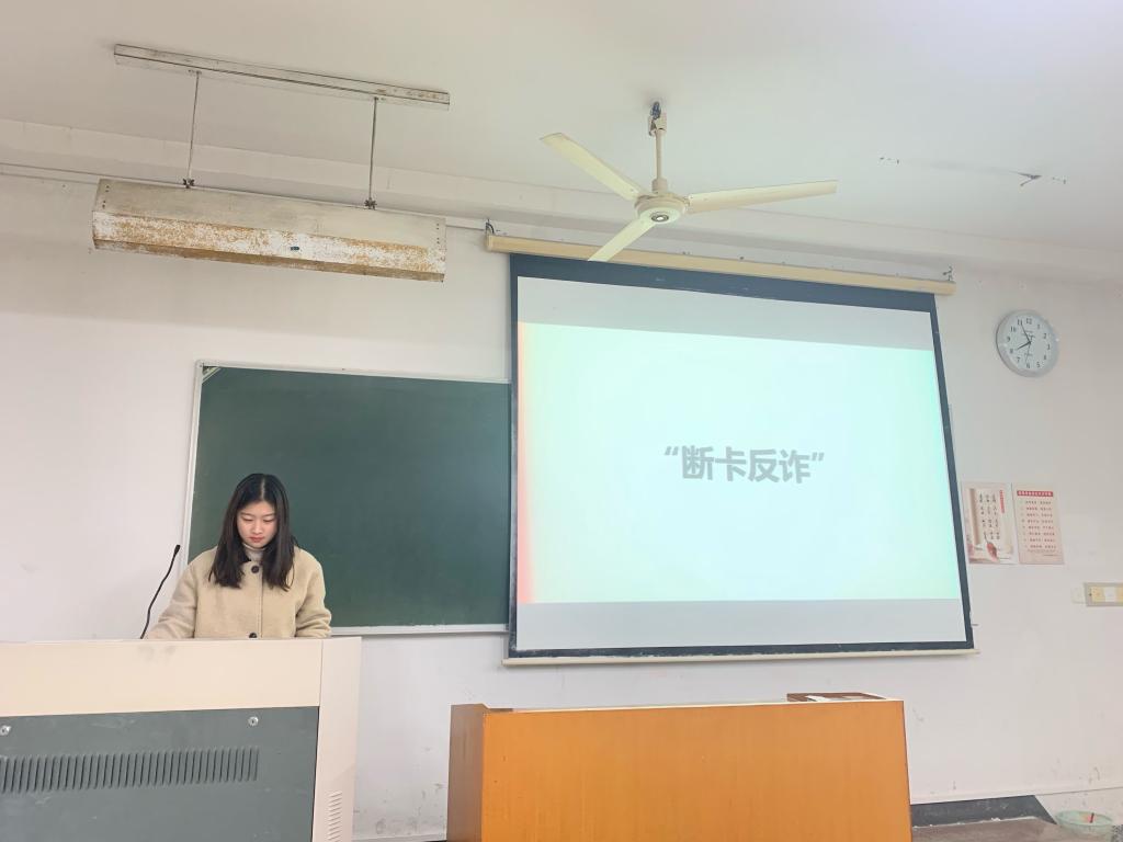 意昂勤工部部长吴佳雨指出“断卡反诈”宣传教育的意义,列举了一些针对员工的诈骗方式,具体讲解老员工受骗的过程与骗子的惯用手法,并分析了受骗同学的心理,提醒同学们提高防范意识。会末,吴雨佳建议同学们不轻信获利短信、不透露个人信息、不随便转账、不接触网络刷单与投资、慎接陌生电话,告诫同学们警惕网络诈骗,提高安全意识。