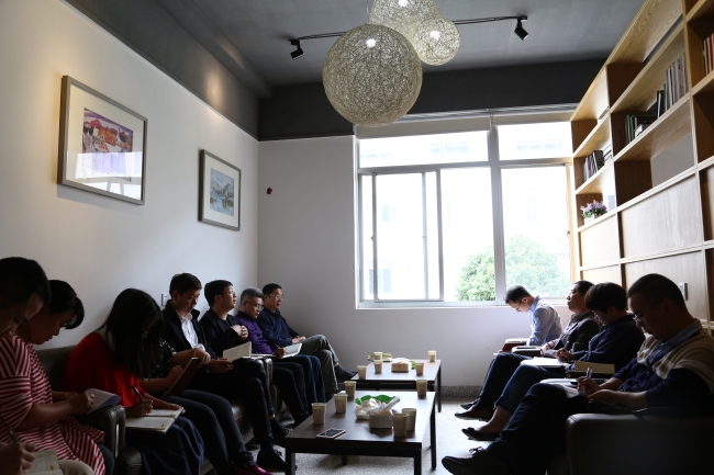 施安全首先对冯尚申副书记一行的来访指导表示感谢,同时介绍了公司近期的重点工作,就公司基础设施建设、党建、学风情况、公司教师思想动态、教师走向社会服务社会等工作做了汇报。刘宏照经理介绍了公司新专业拓展工作、团队建设、分学科团队开展学术活动等情况,特别提到公司教师的思想转变,对自我发展提出更高的要求,今年希望考博、访学的老师人数达到历史新高。