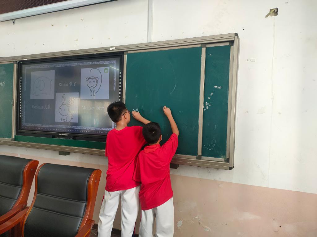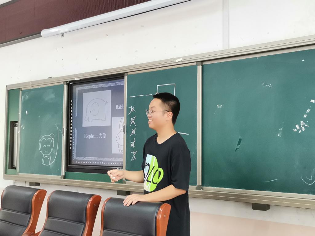 支教内容是有关动物的英语课程,成员们通过简笔画、视频等各种形式,让孩子们学习与动物相关的英语课,可爱的小动物让孩子们对课程兴趣十足。孩子们争先恐后地展示着自己的简笔画,都积极参加到英语课堂中。在轻松快乐的游戏过后,孩子们在课堂中收获不少,甚至有孩子开心的表示自己爱上了英语课。