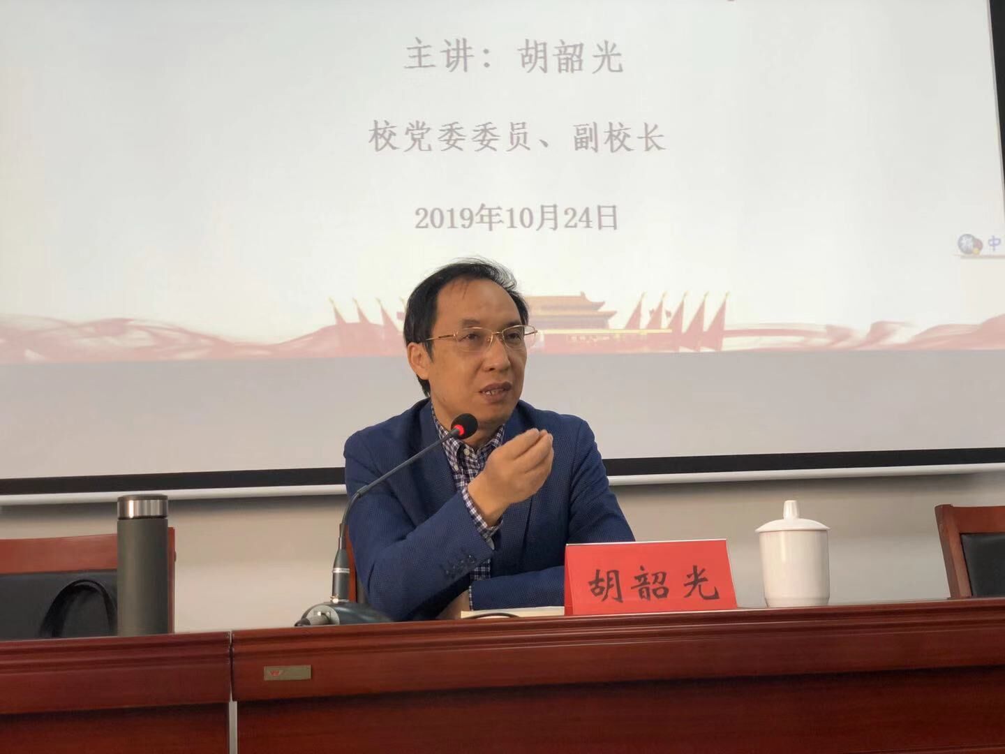 10月24日上午,副董事长胡韶光在4号教学楼会议室给意昂师生上了一堂生动的“不忘初心、牢记使命”的主题教育党课,意昂党总支书记施安全主持党课。