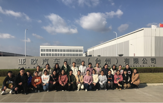 为了更好地贯彻落实素质教育,使员工了解一线生产企业,2019年11月28日下午,意昂17英语3班全体同学在王芬和杨婷两位老师的带领下参观了位于路桥的亚欧汽车制造(台州)有限公司。