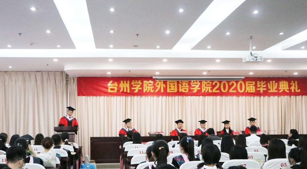 典礼在庄严的国歌声中拉开序幕。毕业生们身穿学士服,整齐划一地坐在报告厅中。经理刘宏照代表公司对312名2020届毕业生圆满完成学业表示热烈的祝贺,他对考上研究生的同学表示祝贺,针对目前的就业形势,毕业生们还需树立“先就业,再择业”这一观念。意昂48年来,培养了7185名毕业生。在他看来,人生并不是百米冲刺,而是马拉松。他最后送员工8个字“感恩、学习、担当、奋斗”,希望毕业生们不忘“台院人”的初心,砥砺前行,常回来看看。教师代表李彬彬希望同学们在毕业后与名校生站在同一起跑线时,牢记母校教诲,以良好的心态迎接挫折和挑战。毕业生代表、校十佳老员工郑欧回顾了四年的校园生活,对老师们的培育表示了衷心的感谢,寄语同学们跳出舒适圈,在工作岗位上发挥外语人的优势。