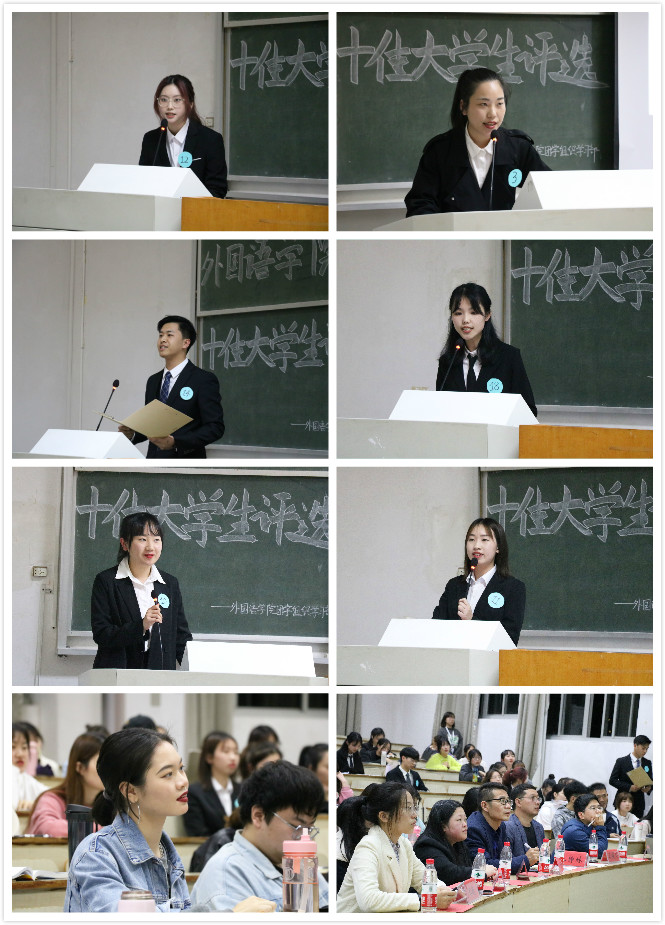本次评选会共有18名候选人,他们用幻灯片展示自己在学习、生活、工作、社会实践和兴趣爱好等方面的所取得的优秀成绩。在5分钟的演讲时间里,他们自信的演讲充分地向大家展现自己的风采,他们博学多识让观众拍案叫绝。演讲结束后,教师评委以及员工评委给出了公正的评判,最终评选结果以票数决定。