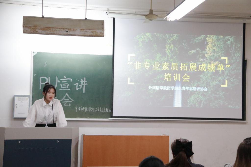 本次宣讲会共分为意昂团学组织的pu活动申请交流会和意昂各班班干部的非专业素质拓展成绩单培训会。会上,于海欣先介绍了客户端首页和活动首页各个选项的功能,后就申报活动的流程、注意事项、实践积分的申请及积分管理办法等内容进行了介绍和阐述。