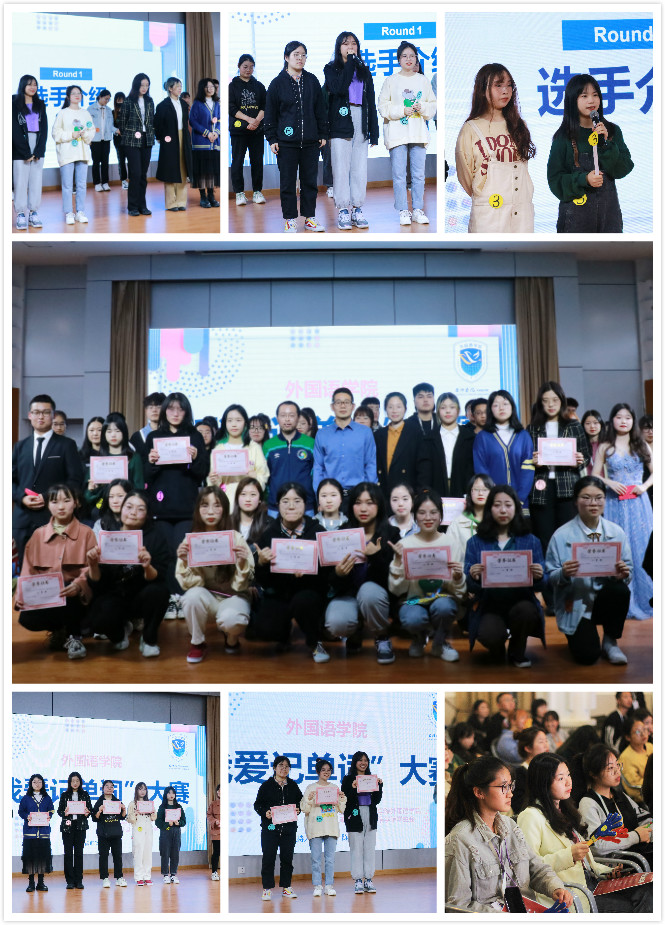 本次活动50余人报名,经过初赛笔试筛选,18人脱颖而出,入围现场决赛。本次决赛共两个环节。第一环节“乱码识单词”,选手们根据屏幕上给出的字母,将其按照顺序重新组成单词并抢答。紧接着,第二环节“齐力猜单词”,每队选派两人用英文对屏幕上给出的单词进行描述,另一位选手根据队友的描述猜出单词,选手们凭借着丰富的词汇量完成了比赛。最后,嘉宾冯璐婷演唱了一首《safe and sound》,随着音乐的结束,比赛结果出炉。