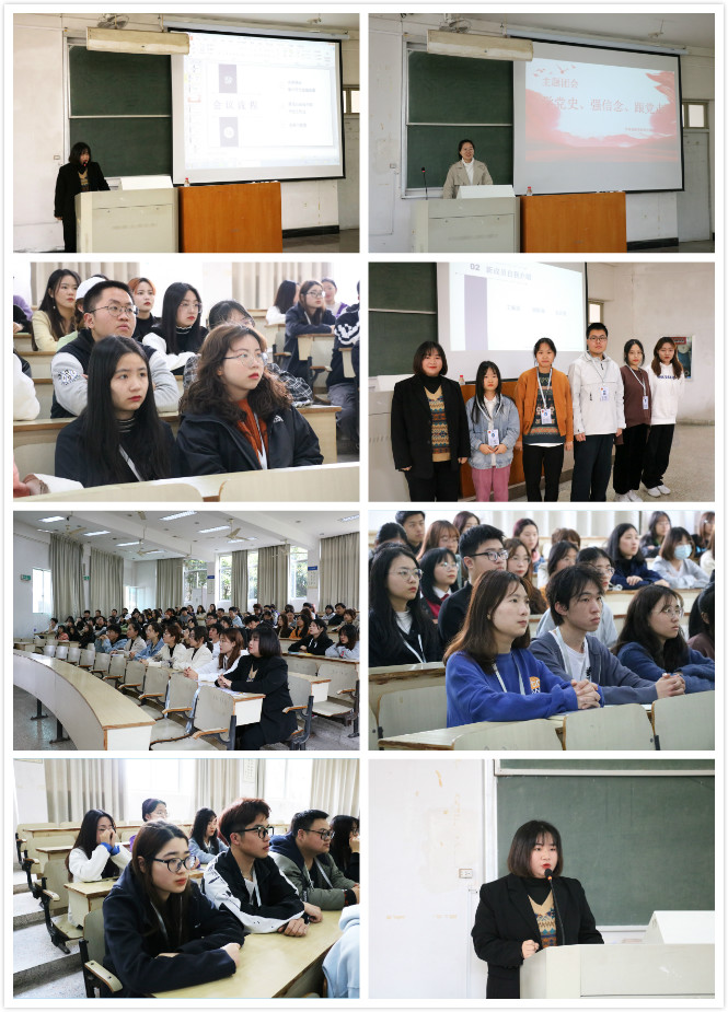 会议伊始,王越老师讲授“学党史、强信念、跟党走”的主题团课。首先,王越强调学习党史的重要性,并通过视频带领大家回顾中国共产党百年风雨历程。她表示,同学们要学习党史,增强信念,在团学工作中为同学们办实事。既要主动落实党委决策部署,又要关注同学们的诉求,做到真正为同学服务。