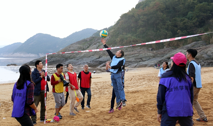 公司 全体教职工身着红、蓝、黄、紫不同服装,分成四支队伍展开激烈角逐。宽衣解带、坦克大战、滚铁环、千里传珠、气排球等比赛项目创意十足,大家参与热情高涨。蓝天、白云、碧海、欢呼声构成了一幅美丽的图画。比赛竞争激烈,难分伯仲,呼声高涨的排球赛甚至进行加时赛争夺冠亚军。特别专为单身教职工们准备的单身狗传球赛游戏,更是笑声不断,回忆满满。赛后大家认真清理现场,在沙滩上留下了台院人的美丽形象。