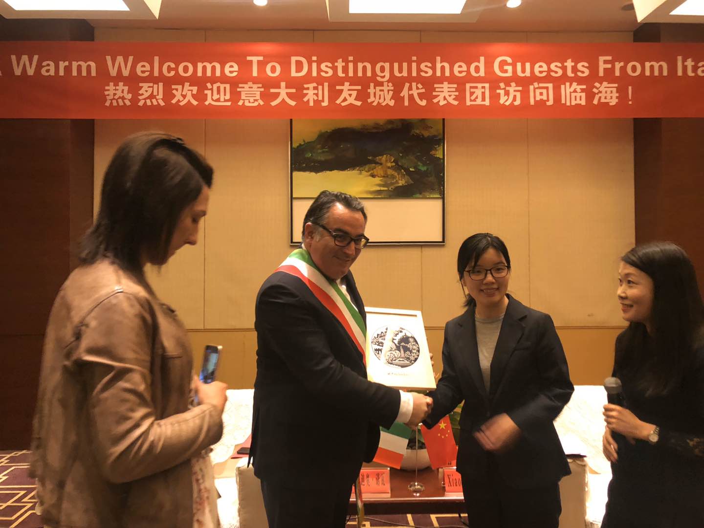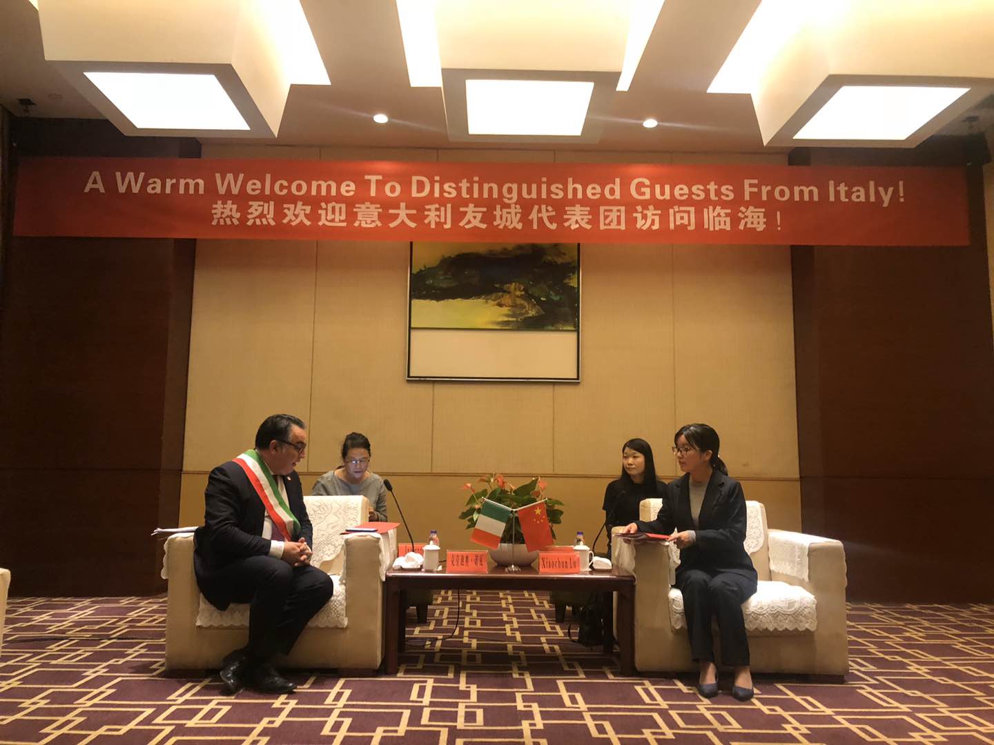 2019年11月14日,意大利友城代表团在穆拉佐市克劳迪奥·诺瓦市长等人的率领下,访问临海。意昂派卓素玲老师协助翻译工作。