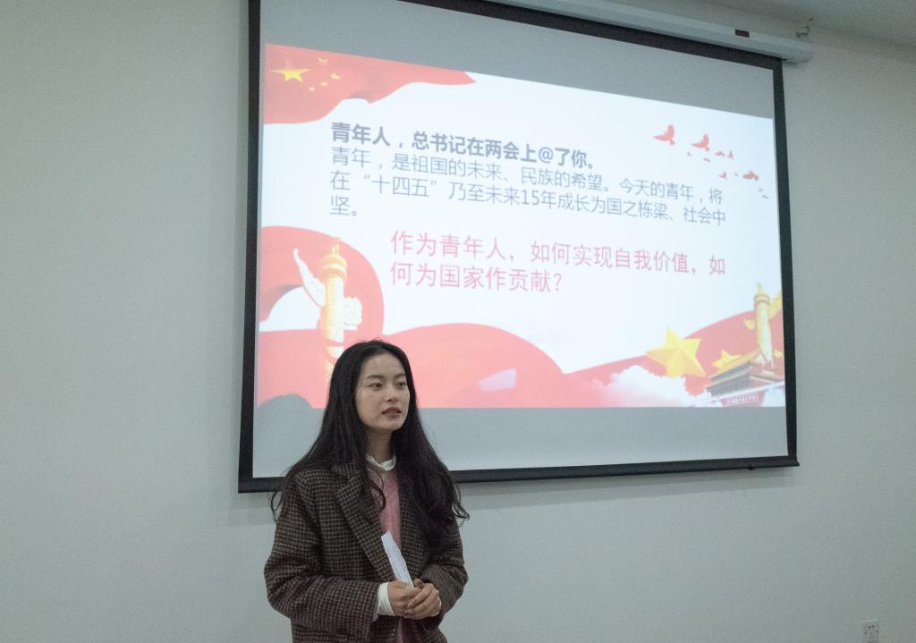 活动结束后,支部书记王丽琼作总结发言。她提出同学们要通过各途径去学习两会知识、了解党史,对党的理论知识和政策方针,要用心研读,主动学习,打牢思想基础,提升实践能力,既要以阅读丈量世界,又要从实践汲取经验。