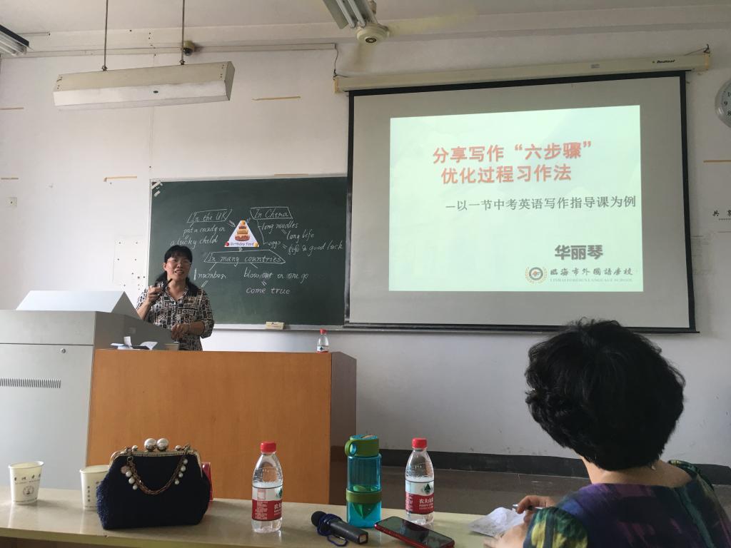 活动由员工示范课、专家点评、专家课例三部分构成。在我院16级师范生示范课程后,意昂体育附中名师金灵敏老师就其教师自身素质、课程内容、师生互动三个方面进行了相应点评与指导,并做了“听说教学设计”主题讲座。回浦中学任美琴老师对员工表现进行了点评与指导。她开展了“浅谈英语词汇/语法学习指导”主题讲座,通过大量教材内容,针对词汇和语法两方面提出了众多指导意见,提出了自身关于词汇语法教学的独到见解——“词汇与语法教学,没有定法,具体内容,具体学习对象,应该有相适应的方法”。临海外国语华丽琴老师就示范课进行点评,而后开展了“分享写作‘六步骤’优化过程习作法”主题讲座,通过中考写作标准向我们完美展示了“一审”、“二列”、“三加”、“四美”、“五查”、“留抄”的写作六步骤。