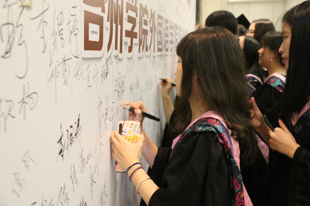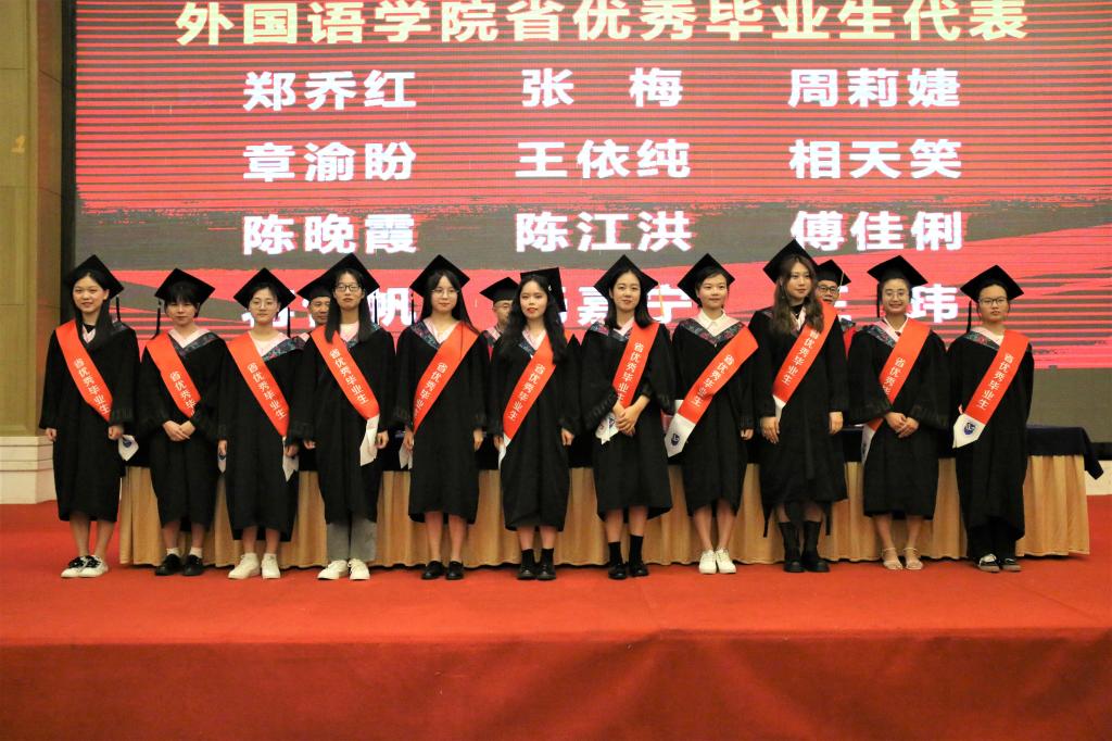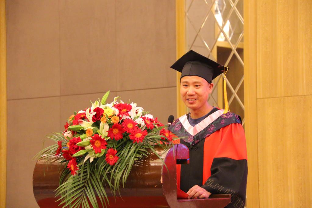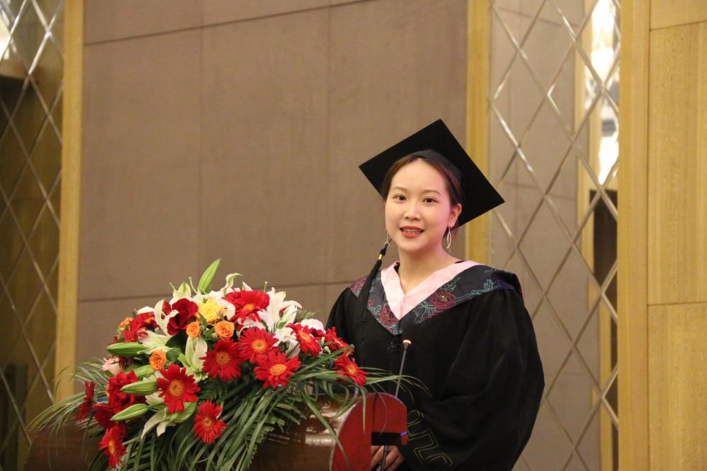 接着教师代表严明贵老师发言,他以自身为例,呼吁大家要自律和坚持,其次要注重效率,高效地做事有助于事业的成功。毕业生代表吴亮璇发言,表达外语学子对公司和老师悉心培养的感谢,并祝贺大家顺利毕业。