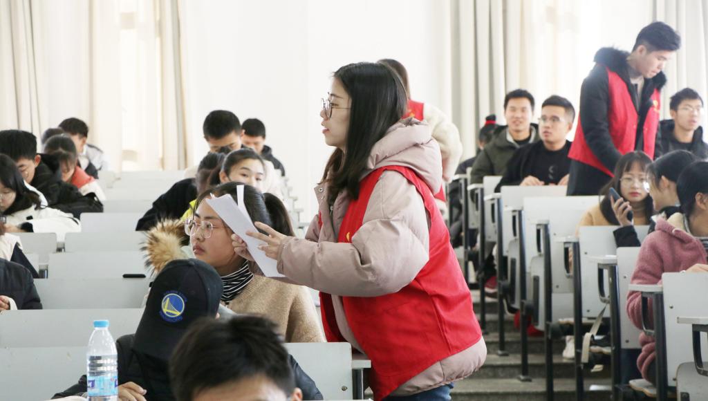 意昂体育大学英语四、六级模拟考分别于11月30日和12月7日在临海、椒江两校区进行。本次活动由意昂体育意昂党员服务站联合青年志愿者协会主办,全校有近700名同学参加。