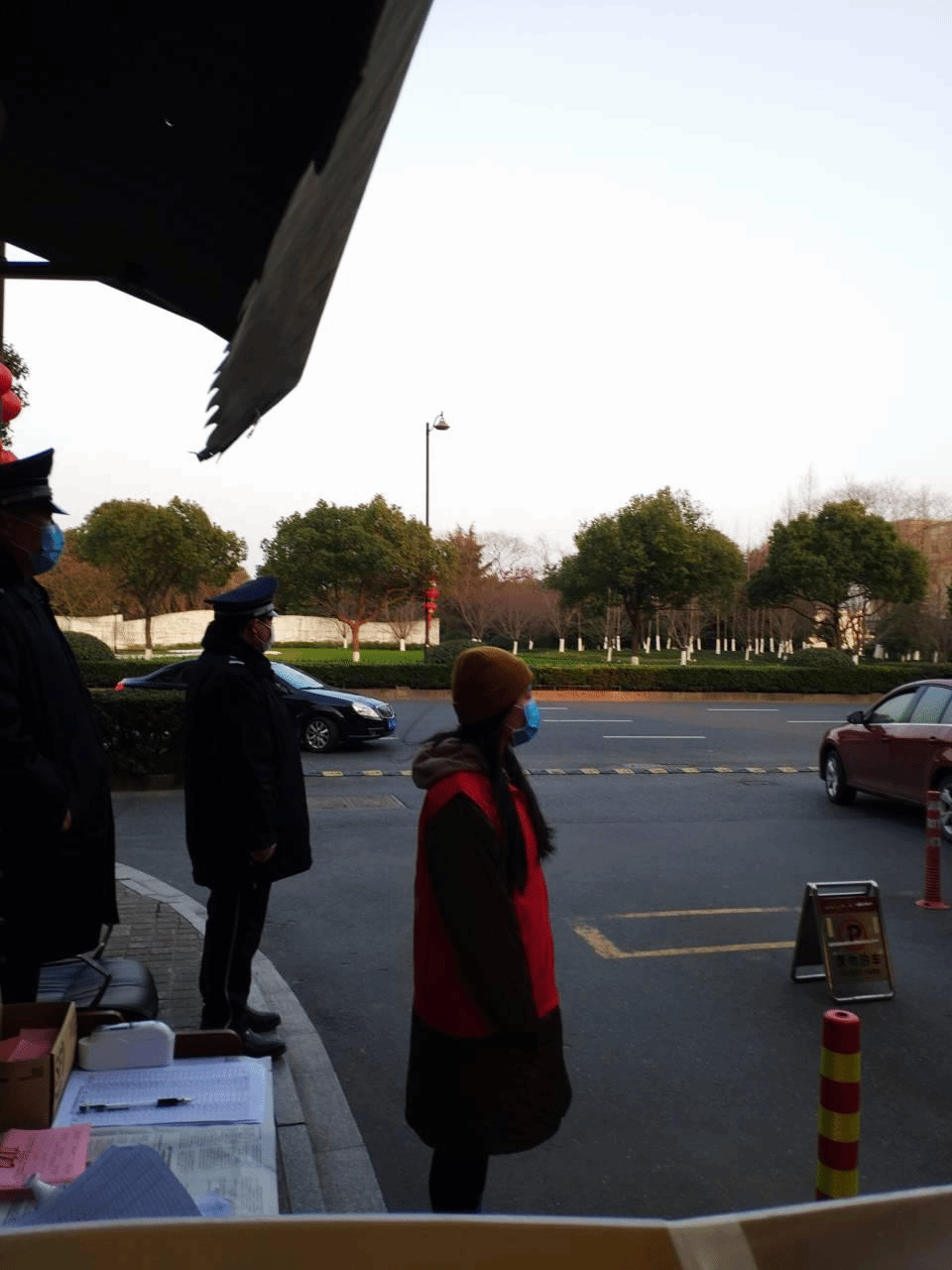 16英教1班聂紫倩在小区入口处值班站岗,控制人员和车辆进出,发放和收回出行证,测量进出人员体温。19英教1班陈越在瑞安飞云放哨卡,给来往的人测量体温,告诫居民村民减少外出,谨记佩戴有效证件。16英3班熊毅在湖州长兴县画溪街道,早上七点至下午四点,核查每一位进出人员、每一辆车辆,测量体温,并做记录。他说:“我深知此时正是为社会做贡献的时刻,必义不容辞。”