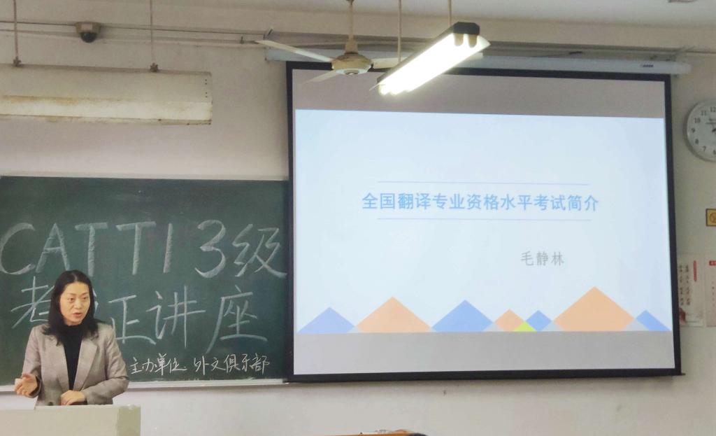 2021年10月21日下午,意昂在2106教室举办了CATTI三级笔译讲座。意昂的毛静林、刘常民两位老师,以及成功通过CATTI三级笔译考试的陆宇晨、施静妍、徐俊杰三位同学出席了本次讲座。