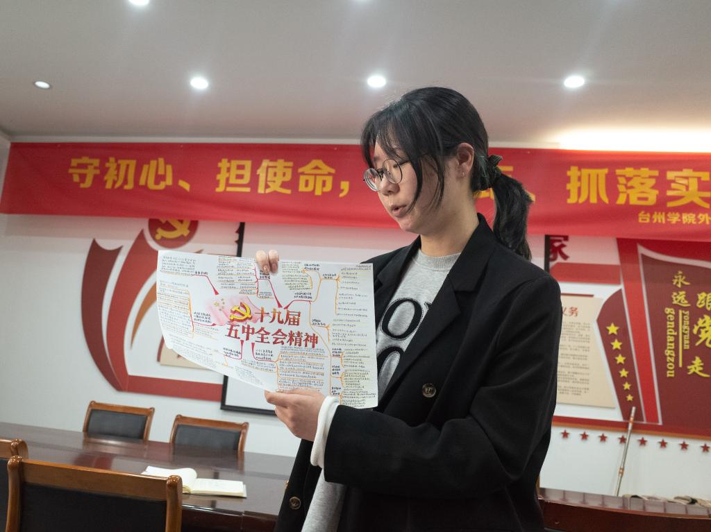 第二部分,“说”十九届五中全会精神。活动中,党员们踊跃发言,各抒己见,纷纷表达了对十九届五中全会精神的独到见解。许婉郡同学分享了她对“创新”的体会。党的十九届五中全会提出,坚持创新在我国现代化建设全局中的核心地位,把科技自立自强作为国家发展的战略支撑。她表示,疫情期间远程办公、远程医疗等服务,让她感受到创新的便利。希望国家能够持续发展,实现建设经济强、百姓富、生态美的新阶段现代化目标。余安澜同学针对“脱贫攻坚”这一主题,分享了朋友电商直播助农,使家乡焕然一新、经济活力稳步提高的经历,说明乡村振兴这一重大历史战略的扎实贯彻,让农业高质高效、乡村宜居宜业、民族富裕富足的画卷正在我们眼前徐徐展开。她表示自己被这样的改变深深打动,也为祖国的强大而感到深深自豪。