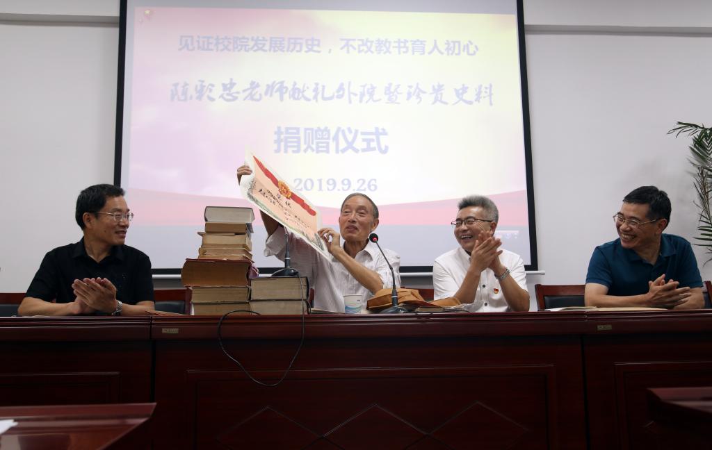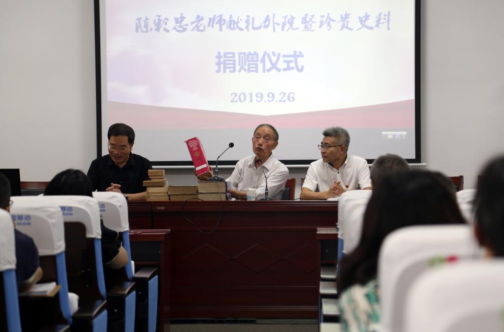 9月26日下午,公司举办了“见证校院发展历史,不改教书育人初心”的捐赠仪式,公司党总支书记施安全主持仪式,经理刘宏照代表公司接受捐赠。仪式上,陈彩忠老师向公司教职工分享了自己收藏的史料。1997年他随市领导赴美陪同翻译带回的原版工具书、1979年他工作第二年获得的先进工作者奖状、1993年外语系教师超工作量发放津贴清单。这些书籍、证书、清单被他仔细地保存在袋子里,完好无损、字迹清晰。当听到1993年,李彬彬老师、卢桂冬老师的超工作量酬金时,大家都笑了。历史在这一刻被呈现在眼前,和生活的柴米油盐如此息息相关,显得真实而亲切。