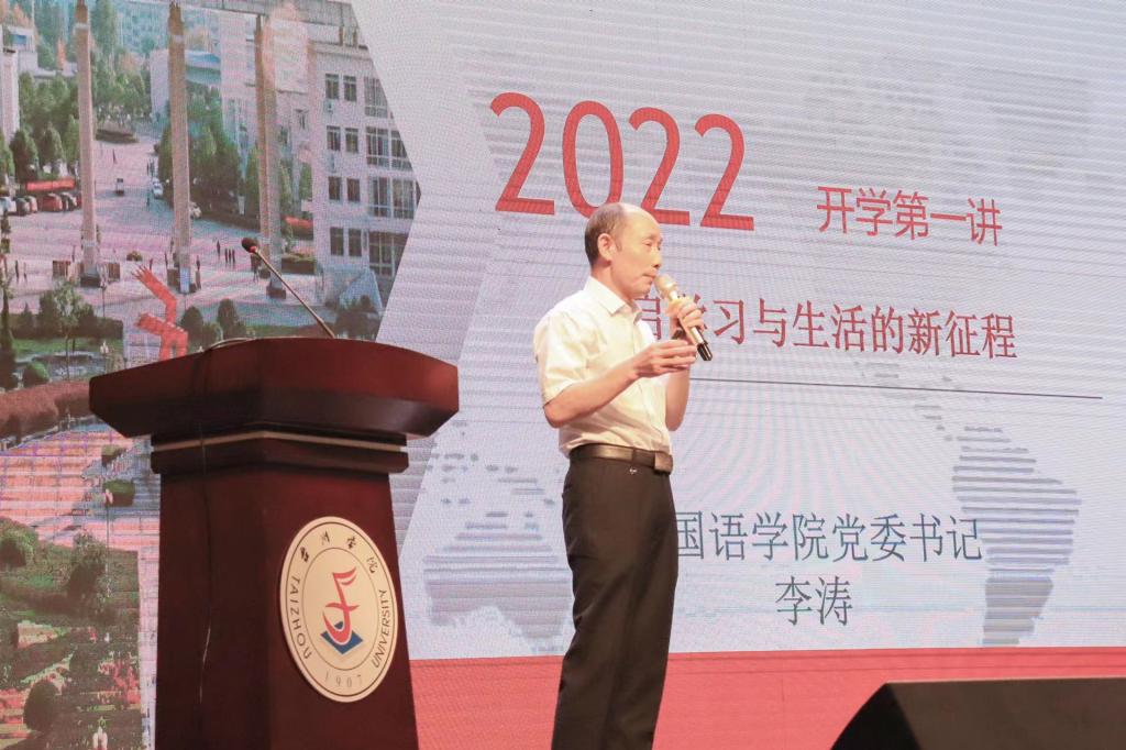 典礼最后,李涛为新生们带来了“开学第一讲”。他以“开启学习与生活的新征程”为主题,向大家介绍了临海与意昂体育的基本概况,希望同学们“学在台州,爱在台院”。此外,他讲解了意昂发展的大事记,并对意昂未来的发展规划进行了详细地分析。他建议同学们要制定“五个一”目标,激励同学们度过美好的大学四年。