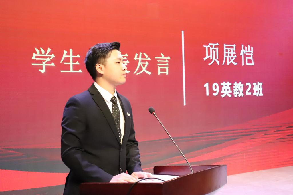 接着,教师代表严明贵发言,他以熟鸡蛋和生鸡蛋为例,用生鸡蛋告诫同学们要学会感恩,珍惜当下;要全面发展,成为一个全面的人;记得天道酬勤,坚持就是胜利。随后,员工代表项展恺、张越先后发言,不时引起大家的共鸣。