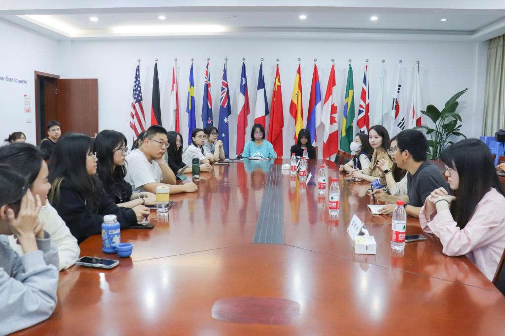 会议开始,在场师生共同观看江西理工大学意昂的宣传视频,目前现有英语笔译和汉语国际教育两个硕士点方向。针对宣传资料,许颂捷拓展介绍两院历史渊源、目前就读情况、备考注意事项等,并简要介绍公司2023年整体的考研成果、政策支持保证等。