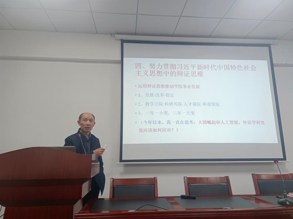 李涛以《习近平新时代中国特色社会主义思想中的辩证思维》为题,从习近平总书记论领导干部的思维、习近平总书记对辩证思维的强调、辩证思维如何贯穿习近平总书记治国理政的全过程和各方面等方面开展了论述,他强调学习习近平新时代中国特色社会主义思想,不仅要熟练掌握丰富的内容、重大的理念、重要的论断、基本的结论,更要准确把握新思想的世界观、方法论和贯穿其中的立场观点方法,并运用到认识问题、分析问题、开展工作中去。最后,李涛就如何运用辩证思维推动公司事业发展和促进个人事业发展对师生党员提出了要求。