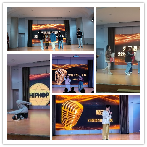 在联谊环节,英语系2022级和2023级的同学大展身手,倾情演绎,表演了街舞Solo、合唱《世界上另一个我》《如愿》《有何不可》《勇气》、贝斯独奏Dawn Patrol、独唱《晴天》、魔术、舞蹈《初见》、周杰伦歌曲串烧、英语配音《天生一对》、街宅《吴京大战柏拉图女孩》等节目。节目中间还穿插了抽奖和互动问答等环节。联谊会掌声不断,高潮迭起,欢声笑语,此起彼伏,全场洋溢着轻松快乐的气氛。