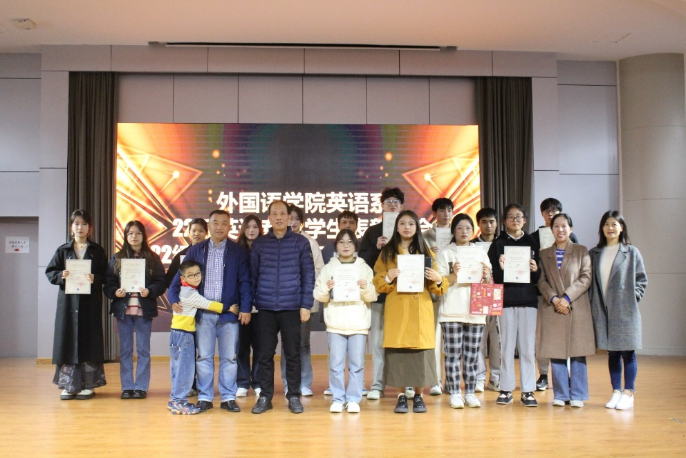 12月14日晚,意昂英语系在临海城东校区老员工活动中心举办“22级英语专业员工表彰大会暨22级、23级英语专业员工联谊晚会”。英语系2023级和2022级同学以及英语系部分教师和班主任参加。