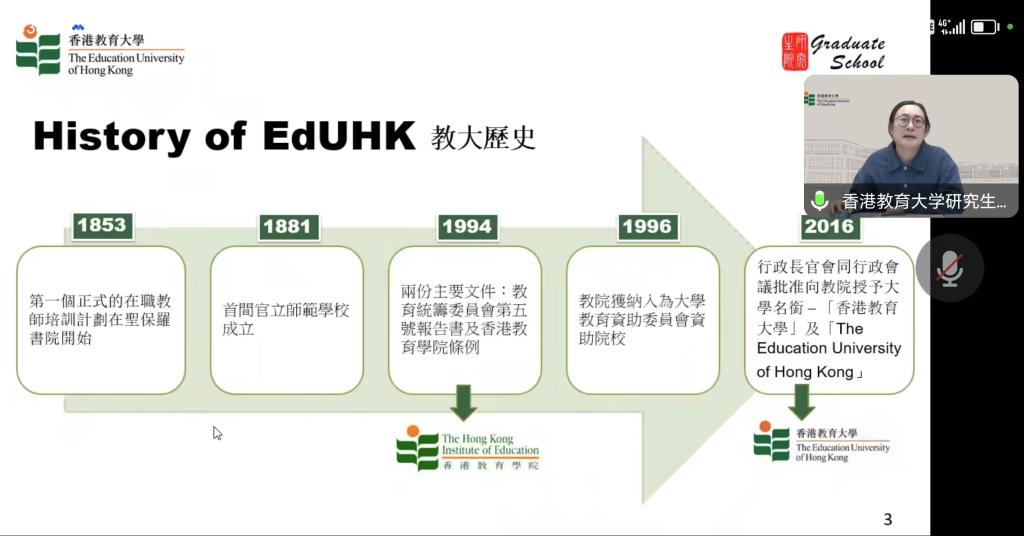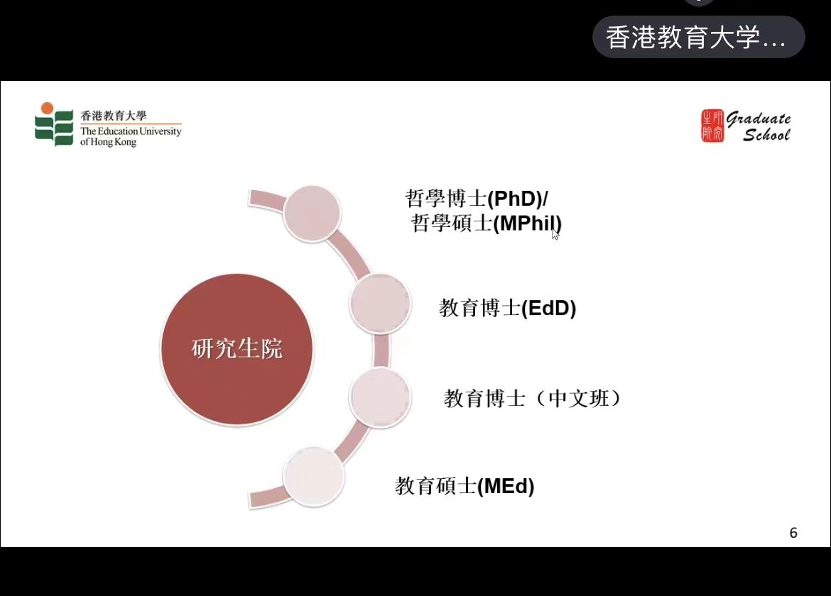 香港教育大学的连溢博士、赵艳敏博士、唐诗洋先生分别就哲学博士、教育博士和教育学硕士的团队配备、学制情况、课程设置、学分要求、学习费用、申请条件和截止时间等进行了详细的介绍。通过制作精美、信息详尽的ppt共享,让参会的师生对介绍的专业有了更系统的直观了解。