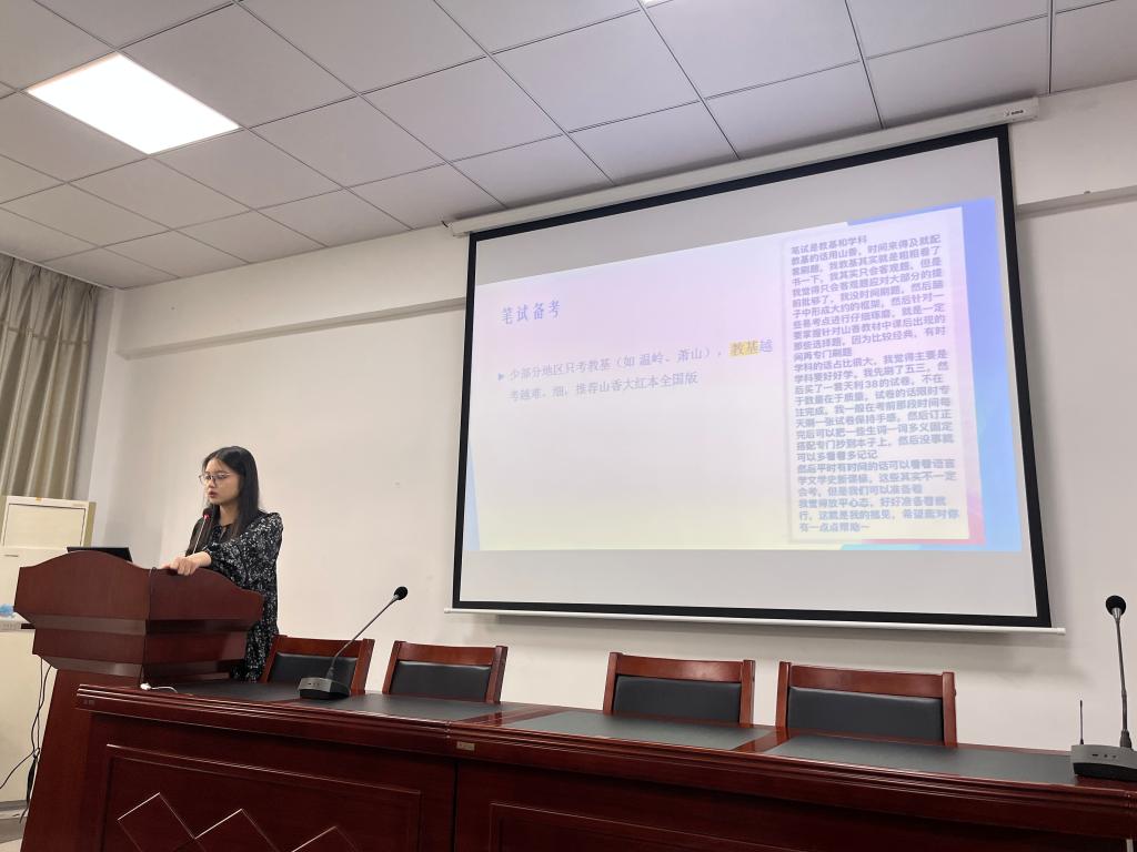 在分享会的尾声,两位学姐都鼓励同学们根据自己的实际情况,查漏补缺,形成自己独特的教学风格,并在考编的道路上勇敢地把握每一个机会。此次考编经验分享会不仅极大地提升了同学们的考编积极性,也增强了他们的自信心。与会学子们均感到受益匪浅,备受鼓舞,满载而归。