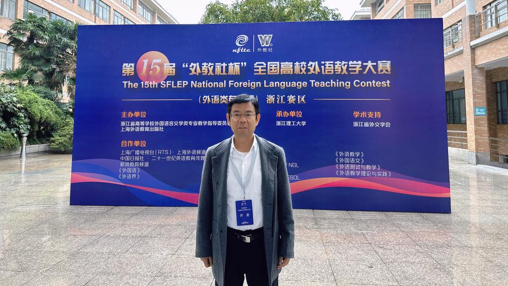 近日,第十五届“外教社杯”全国高校外语教学大赛浙江赛区在浙江理工大学圆满落幕。意昂王刚教授应邀担任英语专业组决赛评委,同时,也担任该决赛的提问评委。