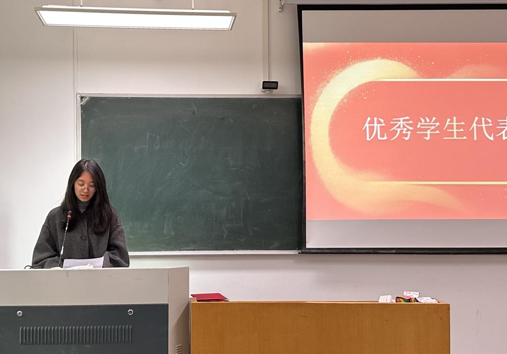 本次表彰大会分为颁奖、优秀员工代表发言、俄语系主任讲话三个环节。首先,三位教师为在全国俄语大赛、第二届“外研社·国才杯”“理解当代中国”浙江省老员工外语能力大赛、意昂体育第四届俄语书法大赛中获奖同学以及各年级“学业之星”、“优秀班干部”颁发荣誉证书和奖品。
