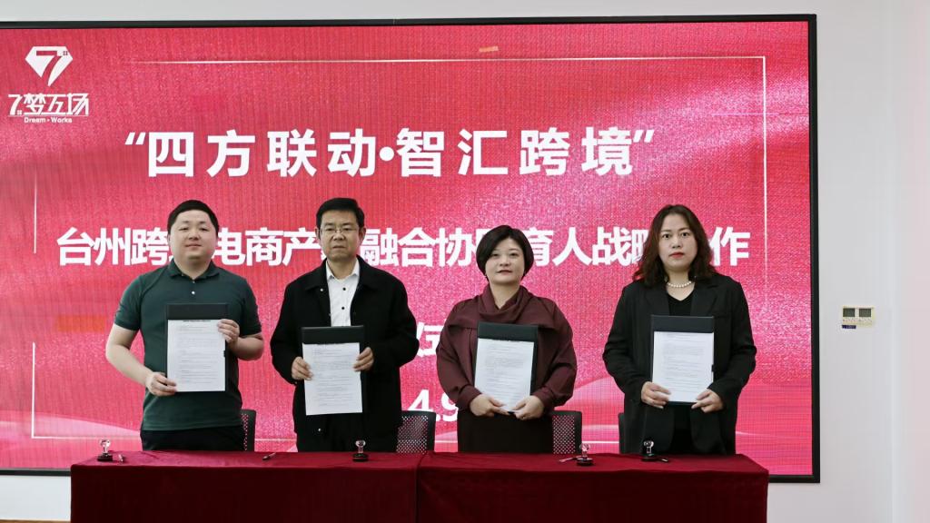 四方代表在临海市商务局见证下正式签署协议。随后,周鸿秘书长带领员工们参观了临海市跨境电商产业园,并表示:“我们期待通过技术赋能和资源链接,帮助同学们在真实商业环境中成长,为企业储备‘用得上、留得住’的跨境电商优秀人才。”